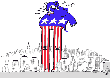 中新網(wǎng)9月4日電 美國民主黨與共和黨的總統(tǒng)競選之戰(zhàn),被稱為“驢象之爭”。美共和黨在紐約操辦了歷時4天的全國代表大會,現(xiàn)任總統(tǒng)布什接受了黨內(nèi)總統(tǒng)候選人提名。共和黨借大會造勢的努力頗見成效,美《時代》周刊的最新民調(diào)顯示,布什的民眾支持率已明顯領(lǐng)先于民主黨總統(tǒng)候選人克里,可謂“象”氣沖天。