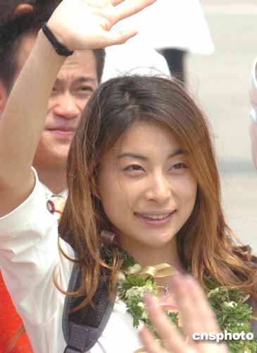 圖:中國跳水名將郭晶晶在歡迎儀式上