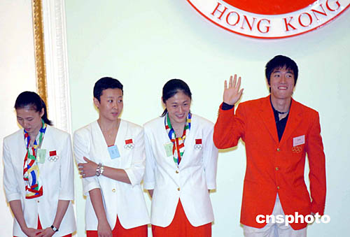 9月6日,香港特區(qū)行政長官董建華在禮賓府舉行盛大歡迎酒會,歡迎為中國奪得32面金牌的中國運(yùn)動(dòng)員。
