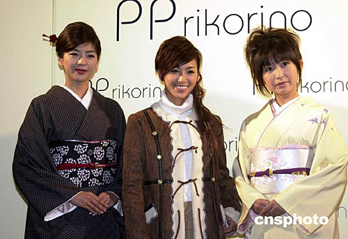 日本知名藝人酒井法子(中)等七日在東京舉行的一個(gè)秋冬新款時(shí)尚服飾展示會(huì)上,傾情演出造勢(shì)。作者:王健