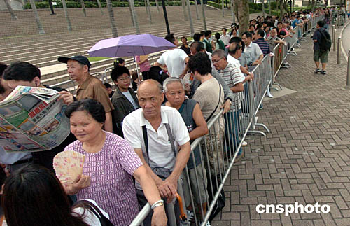 守候,就為了分享,這是今日提前數(shù)小時(shí)就等候在香港大球場(chǎng)外,觀看“中國(guó)人的驕傲──奧運(yùn)金牌精英大匯演”的香港市民的共同心聲。