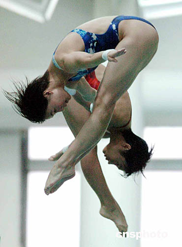 跳水示范表演,首先進(jìn)行的是三米板單人跳水,由郭晶晶第一個出場。郭晶晶向前快走了幾步,彈得很高,向前屈體,然后入水,水花壓得很小。隨后,吳敏霞、彭勃、楊景輝也亮出看家本領(lǐng)。全場對運(yùn)動員的表演贊嘆不已,掌聲不斷。
