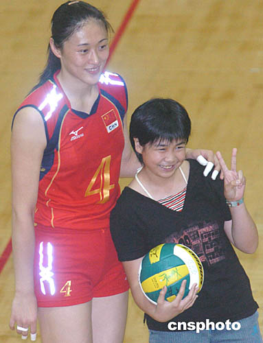 奧運(yùn)冠軍中國(guó)女排的姑娘們?cè)诮叹氷愔液偷膸ьI(lǐng)下,今天在香港修頓室內(nèi)球場(chǎng)與熱愛(ài)她們的香港市民一起度過(guò)了活潑風(fēng)趣而又愉快的一個(gè)下午,如此輕松而又開(kāi)心的經(jīng)歷對(duì)于在球場(chǎng)上汗水淚水中滾打二十年的中國(guó)女排來(lái)說(shuō)確實(shí)難得。