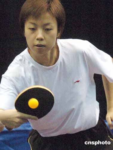 為歡迎國(guó)家?jiàn)W運(yùn)金牌代表團(tuán)訪港,九月八日香港舉行“中國(guó)人的驕傲--奧運(yùn)金牌精英顯風(fēng)采”奧運(yùn)金牌羽毛球及乒乓球表演。圖為奧運(yùn)乒乓球女子單打冠軍張怡寧示范表演。作者:錢興強(qiáng)