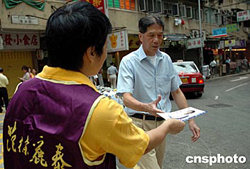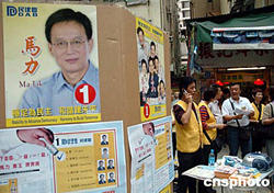 香港9月12日舉行2004年立法會選舉投票日,各候選人在各選區(qū)出動助選團(tuán)拉票,作最后沖刺。作者:洪少葵