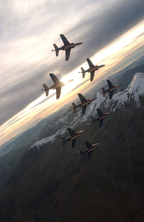 法國空軍的“法蘭西巡邏兵”飛行表演隊正式成立于1964年2月。飛行表演隊的飛機涂著同法國國旗一樣的紅、白、藍三種顏色,機群在空中做飛行表演時也常常把著三種顏色的煙跡留在空中。它象征著“自由”(紅色)、“民主”(白色)、“博愛”(藍色),體現(xiàn)了法國人民勇敢、浪漫的傳統(tǒng)和對未來美好的愿望。圖為精彩的飛行表演(來源:艦船知識網絡版)