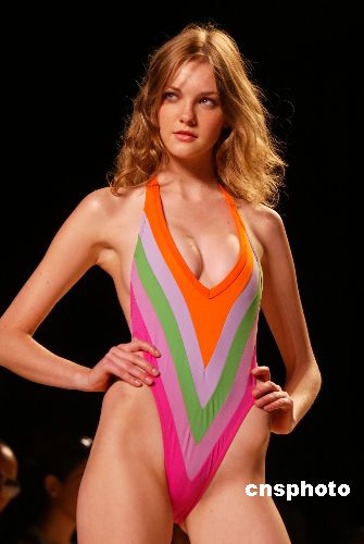 圖為模特在展示新款泳裝。