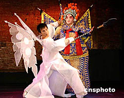 結(jié)合京劇《挑滑車》和現(xiàn)代舞的舞蹈《相遇》,即將由臺灣“風(fēng)之舞形”舞團在臺北推出。舞蹈分上下兩段,由三位演員飾演兩個角色,分別展現(xiàn)宋代猛將高寵和一個現(xiàn)代普通男人在不同時空下激烈的內(nèi)心沖突。9月13日,該舞蹈在臺北市紅樓劇場與媒體見面。圖為高寵(右,劉稀榮飾)與其內(nèi)心角色(左,吳義芳飾)。中新社記者:黃少華
