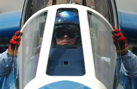 | 法國(guó)空軍的“法蘭西巡邏兵”飛行表演隊(duì)正式成立于1964年2月。飛行表演隊(duì)的飛機(jī)涂著同法國(guó)國(guó)旗一樣的紅、白、藍(lán)三種顏色,機(jī)群在空中做飛行表演時(shí)也常常把著三種顏色的煙跡留在空中。它象征著“自由”(紅色)、“民主”(白色)、“博愛(ài)”(藍(lán)色),體現(xiàn)了法國(guó)人民勇敢、浪漫的傳統(tǒng)和對(duì)未來(lái)美好的愿望。圖為駕駛員正在調(diào)整坐姿(來(lái)源:艦船知識(shí)網(wǎng)絡(luò)版)