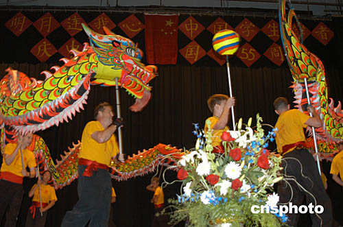圖:中國留美學生與外國人舞龍迎中秋