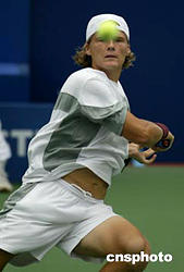 九月十四日,在北京網(wǎng)球中心中央球場舉行的中國網(wǎng)球公開賽ATP男子單打比賽中,澳大利亞選手盧克扎克以零比二的比分不敵美國網(wǎng)球選手丹特。圖為盧克扎克在比賽中。中新社記者:盛佳鵬