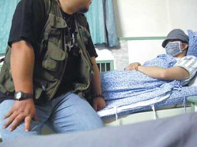昨天,記者下午冒雨來(lái)到易茗正在治療的健宮醫(yī)院,樓道里并沒(méi)有像以往發(fā)生類似事件之后的媒體云集。在四樓骨科的“特需病房”內(nèi),記者沒(méi)有在病床上發(fā)現(xiàn)易茗本人,同病房陪床的病人家屬說(shuō)易茗已經(jīng)出去了。電話聯(lián)系到易茗本人之后,對(duì)方說(shuō)“要轉(zhuǎn)院,不過(guò)還要回來(lái)取東西!庇谑牵浾咴卺t(yī)院的樓道里耐心等待著。幾個(gè)小時(shí)之后,易茗才回到病房。躺在病床上的易茗,戴著帽子,帽檐壓得很低,臉上蒙著醫(yī)用口罩,只露著一雙沒(méi)神的眼睛。記者詢問(wèn)他的受傷情況,他一直回避,沒(méi)有回答,但看得出他左眼像是被擊打過(guò)的樣子。
