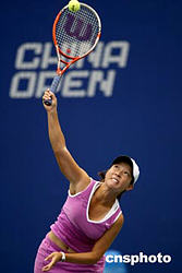 九月十五日,中國網(wǎng)球公開賽ITF女子單打第二輪比賽在北京網(wǎng)球中心的中央球場(chǎng)進(jìn)行,中國選手鄭潔以二比零的比分戰(zhàn)勝新西蘭選手巴克爾。中新社記者:盛佳鵬