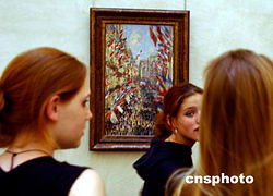 “法國印象派畫展”即將在中國開始的“法國文化年”活動(dòng)中在北京展出,通過馬奈、莫奈、雷諾阿、德加和塞尚等人的五十幅國寶級(jí)作品,展示從印象派初期的探索追求,到不斷發(fā)展日臻成熟所走過的艱辛歷程。分乘五架專機(jī)運(yùn)來的作品將于十月十一日開始,分別在北京、上海和香港令人大飽眼福。圖為代表作《國慶日》。中新社記者:賈國榮
