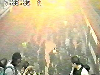 爆炸情景被安裝在阿托查火車站大樓頂部的監(jiān)視攝像機全程錄了下來。顯然,爆炸發(fā)生后,立即引起了乘客的恐慌,乘客們紛紛跑向自動梯的上層。