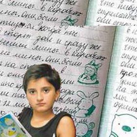 中新網(wǎng)9月16日電 據(jù)俄羅斯電子日報《晨報》報道說,德國報紙《Bild》日前發(fā)表了俄羅斯北奧塞梯共和國別斯蘭第一學校學生、一個在9月1日開學典禮那天被劫為人質長達52小時的小女孩克里斯蒂娜-扎戈耶娃的日記。同年僅13歲的克里斯蒂娜一起被劫為人質的還有她的母親柳德米拉,以及比她還小3歲的妹妹謝拉。然而她這個小妹妹現(xiàn)在已經(jīng)不在人世了,謝拉在9月3日那天就被恐怖分子槍殺了。以下就是克里斯蒂娜用稚氣未脫的兒童語言和工整的字體記下來的日記片段。
