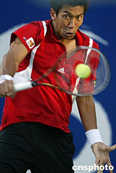 九月十八日,在北京網(wǎng)球中心中央球場(chǎng)進(jìn)行的ATP男子單打半決賽中,泰國(guó)網(wǎng)球名將斯里查潘以零比二不敵俄羅斯選手尤茲尼,無(wú)緣決賽。中新社記者:盛佳鵬