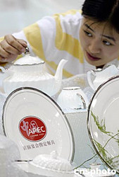 由中國國際貿(mào)易促進(jìn)會(huì)主辦的第七屆唐山中國陶瓷博覽會(huì),九月十八日在新落成的唐山國際會(huì)展中心開幕。中國陶瓷博覽會(huì)自一九九八年開始舉辦至今已歷經(jīng)七屆,目前唐山中國陶瓷博覽會(huì)已成為面向國內(nèi)外、有較大影響力的大型品牌專業(yè)會(huì)展。僅二00三年,唐山市陶瓷產(chǎn)類產(chǎn)品出口創(chuàng)匯達(dá)一點(diǎn)五億美元。中新社記者:毛建軍