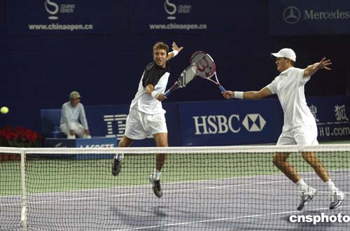 九月十九日,在北京網(wǎng)球中心中央球場(chǎng)進(jìn)行的男子雙打決賽是在兩對(duì)美國選手中展開,最終基米爾斯托博和奧利維戰(zhàn)勝波格莫洛夫和丹特奪取冠軍。中新社記者:盛佳鵬