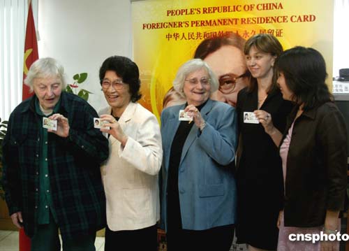 中新社北京九月二十一日電(記者 吳慶才)今天,北京市公安局出入境管理處為北京農(nóng)業(yè)機(jī)械化科學(xué)院的美國(guó)專家寒春等五名在京外國(guó)人頒發(fā)了《外國(guó)人永久居留證》。他們將與其他二十三名外國(guó)人一起成為首批在北京獲得“綠卡”的外國(guó)人。