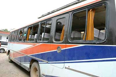 據(jù)知情者將,激烈摩擦不久,馬隊(duì)人員騎馬從石林中返回到龍灣村村口附近的臨時(shí)馬棚,但他們并沒(méi)有息戰(zhàn),而是從馬棚中取出棍棒、鋼管等物什,在村口將乘坐大客車返回村里的群眾演員再次圍住,對(duì)客車開(kāi)始猛烈的進(jìn)攻,瞬間4輛景泰縣某單位的大客車遭到了劇烈打砸,車上所有玻璃被全部打碎,車身到處被砸滿了傷痕,車上的部分群眾演員也遭到暴打,學(xué)生演員們開(kāi)始還擊,沖突再次升級(jí),連全力勸架的學(xué)生教官也被打的頭破血流。