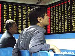 九月二十二日(周三),中國滬深大盤出現(xiàn)沖高回落、深幅調(diào)整的鮮明走向,綠色鋪天蓋地的場面,整日幾乎充滿各證券交易營業(yè)部。北京股民在證券營業(yè)大廳中冷靜觀察股市走向。當(dāng)日上證指數(shù)漲跌幅達(dá)-1.96%,上證B股指數(shù)漲跌幅達(dá)-1.94%;深證成指漲跌幅達(dá)-1.59%;深證成份B指漲跌幅達(dá)-1.43%。中新社記者:鄒憲