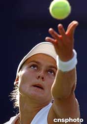 九月二十二日,中國網(wǎng)球公開賽的WTA賽事的女單比賽繼續(xù)進行,在北京網(wǎng)球中心中央球場進行的女單比賽中,中國女單頭號選手鄭潔零比二不敵俄羅斯選手佩特洛娃,無緣晉級下一輪比賽。中新社記者:盛佳鵬