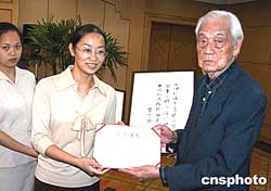 專程從臺(tái)灣前來福州馬尾參加第二屆中國(guó)(福州)船政文化研討會(huì)的九十歲高齡船政人士后裔葉延燊向中國(guó)船政文化博物館捐贈(zèng)先父民國(guó)海軍練營(yíng)營(yíng)長(zhǎng)葉可鈺遺照、遺墨二件。作者:劉可耕