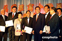 當(dāng)?shù)貢r間九月二十三日,由美國華人企業(yè)家和著名華商團(tuán)體領(lǐng)袖發(fā)起成立的美國華商會在紐約舉行職員就職典禮,中國駐紐約總領(lǐng)事劉碧偉(左五)向商會會長、秘書長、理事等三十多人頒發(fā)了就職證書。作者:趙海燕