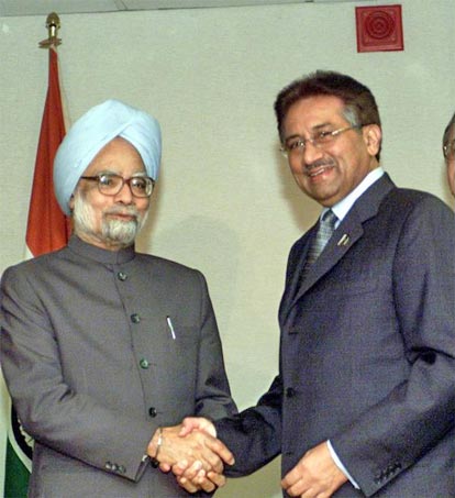 辛格和穆沙拉夫在紐約參加聯(lián)合國大會,他們先舉行了單獨(dú)會談,之后其他官員加入了會談。