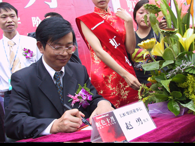 中新四川網(wǎng)9月25日消息(魯彥)兩個(gè)多月前執(zhí)掌長(zhǎng)虹帥印、行事低調(diào)的趙勇今日在成都國(guó)美電器雙楠店高調(diào)露面,為配合長(zhǎng)虹國(guó)慶期間在全國(guó)范圍內(nèi)開展以“虹色十月打造新一代數(shù)字階級(jí)”為主題的活動(dòng),現(xiàn)場(chǎng)為成都市民簽名售機(jī)。