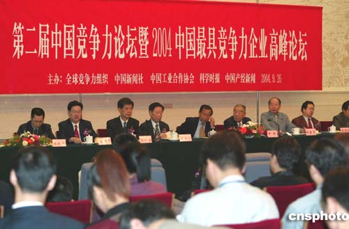 第二屆中國競爭力論壇暨2004最具競爭力企業(yè)高峰論壇在京開幕。中新社記者:滿會(huì)喬