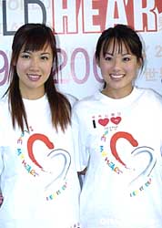 香港藝員楊洛婷[右]、李詩韻出席 “世界心臟日2004”活動。作者:洪少葵