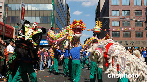 美東時(shí)間九月二十六日,紐約秋高氣爽。由“九一一”以后成立的繁榮華埠社主辦的慶中秋文藝燈節(jié)舉行,慶;顒(dòng)從中午持續(xù)到傍晚,華埠鑼鼓鏗鏘,獅龍競(jìng)舞。作者:龔文謨