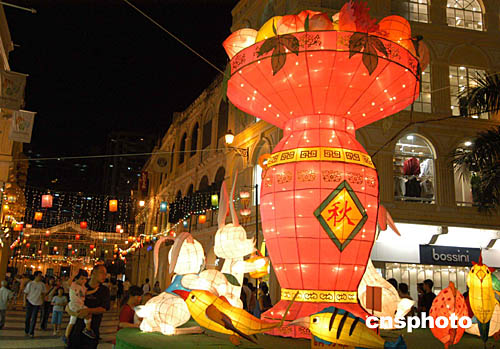中秋將至,澳門(mén)街頭的賀節(jié)花燈,為中秋佳節(jié)增添歡樂(lè)的氣氛。作者:梁永強(qiáng)