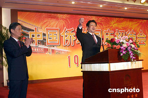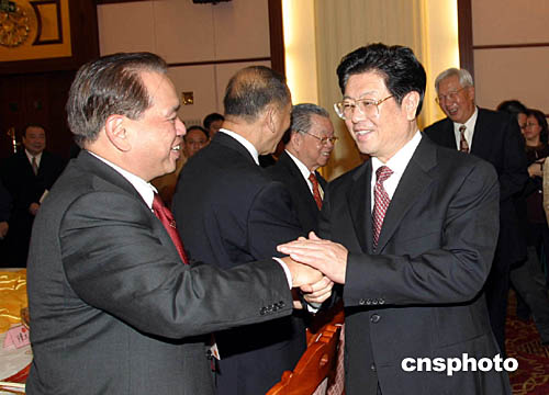 中共中央政治局委員、全國(guó)人大副委員長(zhǎng)王兆國(guó)、全國(guó)政協(xié)副主席羅豪才會(huì)見(jiàn)來(lái)北京參加國(guó)慶五十五周年慶;顒(dòng)的海外華僑華人。