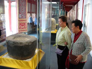 鐘表館所在的奉先殿原為皇宮內祭祖的場所,該殿富麗堂皇,充滿了皇家氣派。該展共展出了清宮自十八世紀以來所收藏的一百七十余件上乘的鐘表作品,且多為泊來品。在三館中,最具震撼力的當屬石鼓館。這些為秦國時期的石鼓石刻,距今有二千多年歷史,石刻文字是研究和傳遞先祖?zhèn)儦v史和文字最直接的紐帶,件件都是無價之寶。據(jù)說,抗日戰(zhàn)爭期間,為了轉運這些國寶,采用一件一車專人護運的方式使它們毫發(fā)未傷。