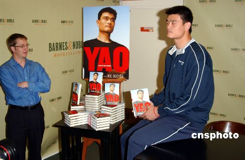 9月28日,中國籃球明星姚明在美國紐約簽售他的自傳《兩個世界的生活》,書中記錄了他在中美兩個國家打球和生活的經(jīng)歷。作者:Ic/cnsphoto