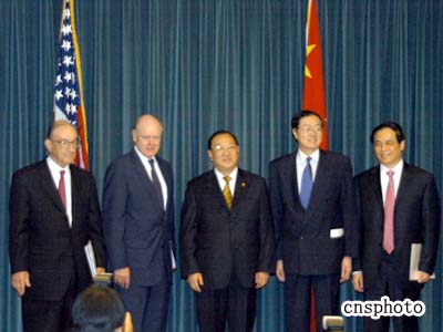 中美經(jīng)濟(jì)聯(lián)委會(huì)第十六屆會(huì)議當(dāng)天在此間召開(kāi)。中國(guó)財(cái)政部長(zhǎng)金人慶與美國(guó)財(cái)長(zhǎng)斯諾共同主持了會(huì)議。中國(guó)人民銀行行長(zhǎng)周小川、中國(guó)銀監(jiān)會(huì)主席劉明康、美聯(lián)儲(chǔ)主席格林斯潘、美國(guó)財(cái)政部副部長(zhǎng)泰勒等財(cái)金高官出席了會(huì)議。