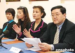 被稱為世界服裝之都的紐約,二○○四年十二月將由華人首次主辦模特選拔賽,比賽名為“美麗人生”。圖為選拔賽召集人艾冰(右二)與紐約華人總商會會長劉建邦(右)等向新聞界發(fā)布消息。據(jù)悉,在世貿(mào)組織有關(guān)紡織品配額開放后,這次比賽將給新銳服裝設(shè)計師和華人服裝廠商提供施展拳腳的機(jī)會。作者:龔文謨