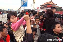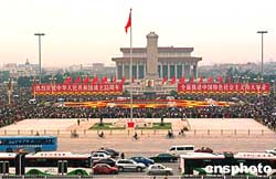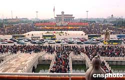 十月二日的國(guó)慶節(jié)假日,天安門(mén)廣場(chǎng)向北京市民來(lái)賓開(kāi)放,數(shù)十萬(wàn)游人,紛至沓來(lái),從各個(gè)通道擁進(jìn)廣場(chǎng)觀光,形成節(jié)日人山人海的景觀。作者:鄒憲