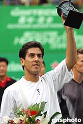 中新社上海十月三日電(劉立濤)上海喜力網(wǎng)球公開賽男子單打決賽,今天下午在阿根廷選手卡納斯與德國人博格斯穆勒之間展開?{斯最后以二比零擊敗對手奪得冠軍,這也是他今年獲得的第三個ATP冠軍頭銜。