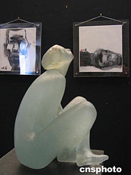 十月一日至十日,在巴黎最高的畫廊——距地面一百多米的拉迪芳斯新凱旋門畫廊舉辦了一個匯粹了中法兩國藝術家并集繪畫、雕塑、攝影于一體的大型展覽。來自浙江畫院的十八位畫家的八十余幅中國畫、來自浙江嘉興的二十五位攝影家拍攝的近百幅照片,同法國雕塑家的雕塑作品一道展出,東西方文化間的交流與對比表現(xiàn)得淋漓盡致。圖為中國畫家寫意中國畫前的法國雕塑家的人體雕塑作品,兩者風格迥異,卻顧盼成趣。作者:鐘誠