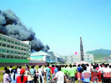 昨天上午9點多,在惠州市仲愷高新技術開發(fā)區(qū)內(nèi)的LG惠州電子公司一棟三層樓大廠房發(fā)生大火,致使2萬平方米大的廠房完全被燒毀,在五六個小時內(nèi)廠房從一樓燒至頂層,廠房內(nèi)價值過億元的電子產(chǎn)品全部報廢。至昨天下午5時統(tǒng)計,火災共有10多人受傷,4人重傷,2人死亡,火勢沒有蔓延到其他廠房。