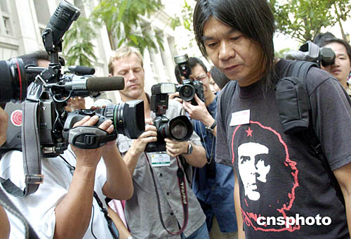 | 引人爭議、外號“長毛”的梁國雄,10月6日出席香港新一屆立法會首次會議宣誓就任立法會議員。他按照立法會誓辭宣誓前,大聲狂呼。立法會部分議員對梁國雄的宣誓方式表示遺憾,認(rèn)為議員需要遵守議事規(guī)則。有輿論指“長毛”行為出位,實(shí)有作秀之嫌。圖為梁國雄在進(jìn)入立法會大樓前受到大批傳媒及警方“關(guān)照”。作者:洪少葵