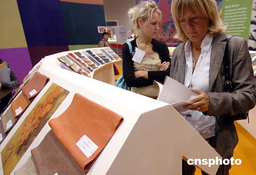 香港國際秋季時裝面料展,十月六日在香港會展中心開幕,該展導(dǎo)向委員會發(fā)布2005/06秋、冬時裝及面料潮流趨勢三大主題為,“和應(yīng)”、“遠(yuǎn)見”及“個性”。中新社記者:錢興強(qiáng)