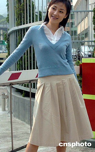 香港藝員萬綺雯出任電視劇《爸爸兩邊走》女主角,十月七日在亞視試造型。中新社記者:錢興強(qiáng)