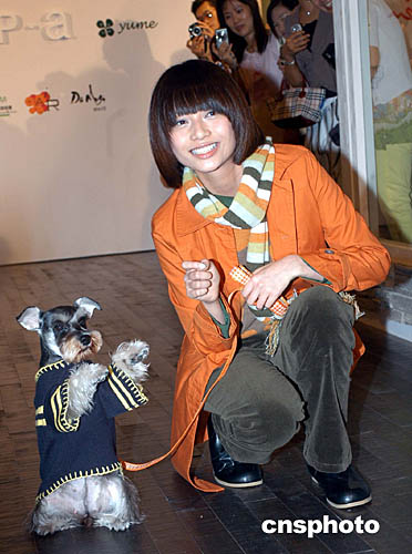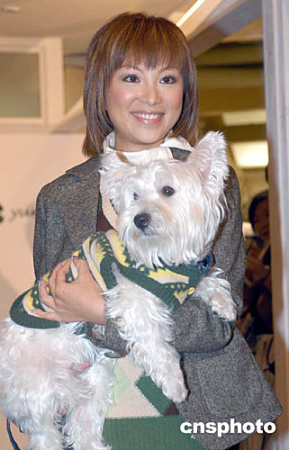 利嘉儀并帶同愛犬“豆豆”為該店展示秋冬時(shí)裝及別致的狗仔服飾。
