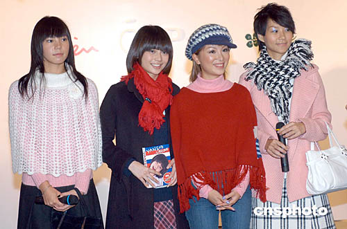 歌星吳日言、藝員利嘉儀、張?jiān)伓?左一)、張?jiān)佸?右一)10月7日在香港出席時(shí)裝連鎖店OPA又一城旗艦店開幕,并為該店展示秋冬時(shí)裝。