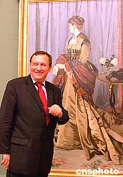 | “法國(guó)印象派繪畫(huà)珍品展”中外記者招待會(huì)十月八日在中國(guó)美術(shù)館舉行。法國(guó)奧賽博物館館長(zhǎng)勒穆瓦納先生向媒體介紹克勞德·莫奈的作品《戈迪拜爾夫人》。“法國(guó)印象派繪畫(huà)珍品展”將于十月十一日至十一月二十七日在中國(guó)美術(shù)館舉行。本次展覽展出法國(guó)精選出的51幅具有代表性的印象派作品,它們均出自法國(guó)印象派繪畫(huà)史上最重要的十四位畫(huà)家之手,這也將是中國(guó)舉行的水平最高、最為重要的一次西方繪畫(huà)作品展。作為“法國(guó)文化年”項(xiàng)目的重頭戲,法國(guó)國(guó)家收藏品中的印象派珍品將于二零零四年十月起,連續(xù)六個(gè)月在在中國(guó)北京、上海、香港展出。作者:張勤